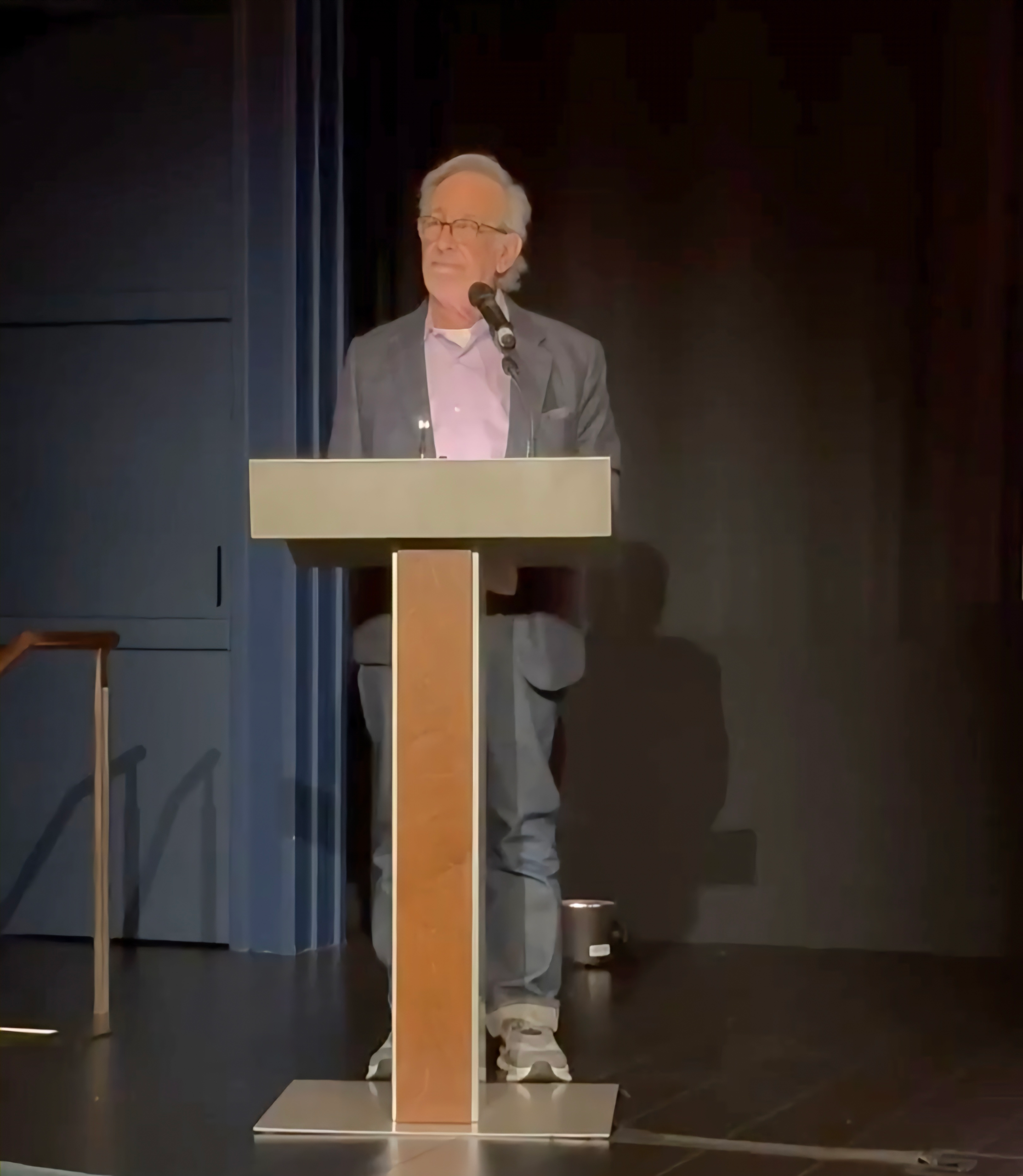 بدا سبيلبرغ، الحائز على العديد من الجوائز، منبهرًا حقًا بوجود مسرح يحمل اسمه، وقال للحضور: «لقد أمضيتُ وقتًا طويلًا خلف الكاميرا، لذا فإن تفانيًا كهذا أمرٌ استثنائي».