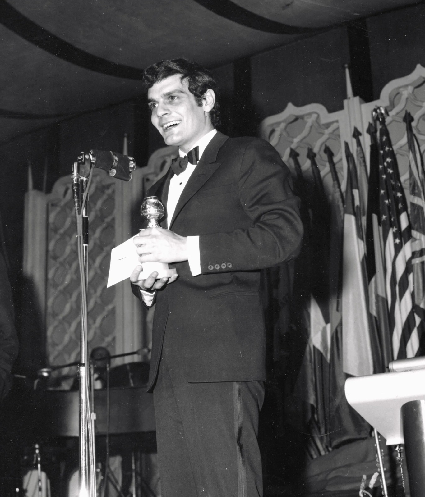 عمر الشريف أثناء حصولة على جائزة «غولدن غلوب» (1963)